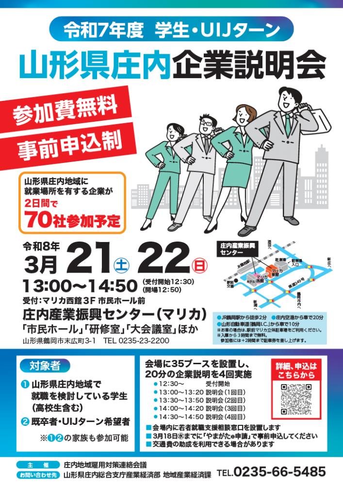 3/21・22 企業説明会「令和7年度学生・UIJターン 山形県庄内企業説明会」に参加します