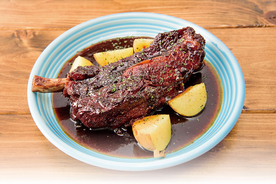 一押しは、時間をかけてじっくり作る“スペアリブの赤ワイン煮込み”。